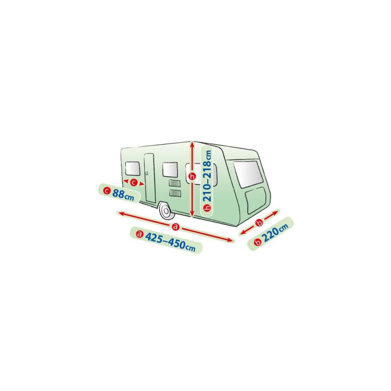 Ochranná plachta pre karavany je navrhnutá na ochranu obytných prívesov s dĺžkou 425 až 450 cm pred nepriaznivými vplyvmi počasia a vonkajšími faktormi. Táto plachta poskytuje spoľahlivú ochranu počas celého roka.