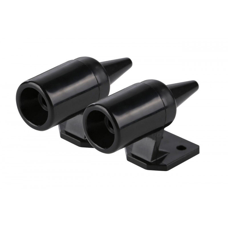 Akustický plašič zveri – píšťalka, 2ks. Jednoduchá montáž nalepením. Počas jazdy produkuje veľmi vysoký tón, ktorý divú zver odradí od príchodu do blízkosti vozovky. Plašič funguje na princípe píšťaly, tá vydáva pri jazde nepretržitý vysokofrekvenčný tón nad prahom počuteľnosti, ktorý odháňa účinne zver pred vstupom do vozovky. Plašič zveri namontujte na prednú časť vozidla na také miesto, aby bolo za jazdy pod náporom vzduchu, napríklad do otvorov alebo prelisov v prednom nárazníku. Širšia strana trubice musí smerovať pred vozidlo.