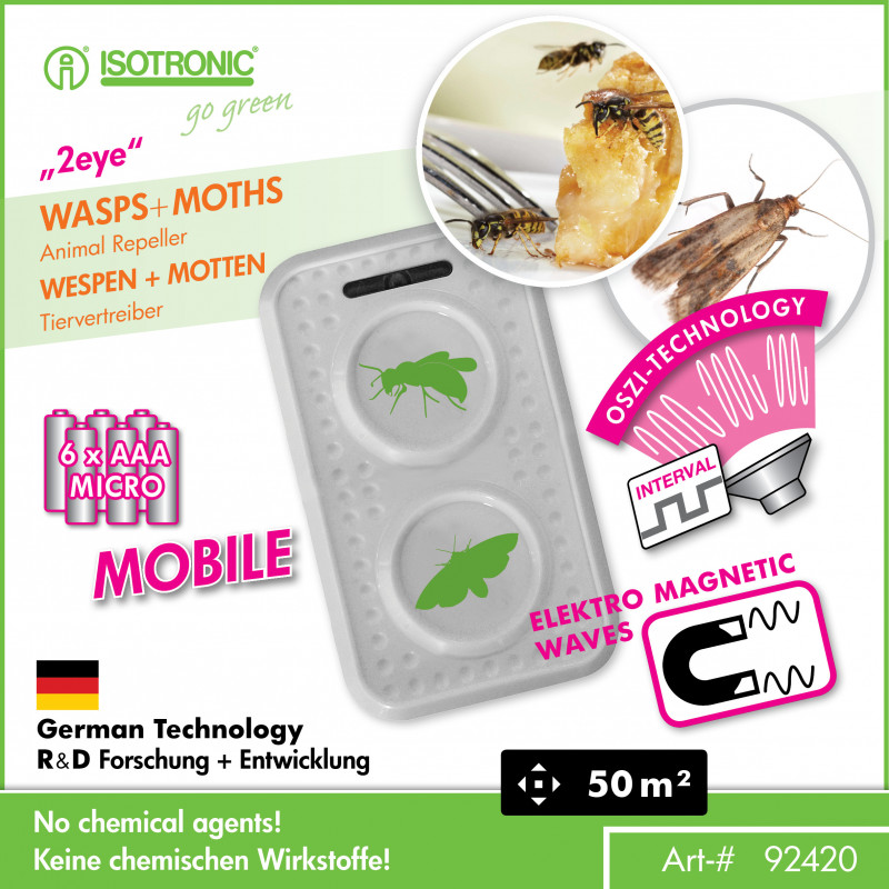 Prenosné zariadenie od firmy ISOTRONIC, udržuje osy sršne alebo mole ďaleko od auta, garáže, povaly alebo záhrady s mimoriadne vysoko intervalovo modulovanými zvukmi. Pre maximálnu účinnosť pracuje proti osiam, sršňom alebo moliam v rôznych zvukových a frekvenčných rozsahoch. Toto obmedzuje a narúša ich zmysly. Okrem toho zariadenie vysiela elektromegnetické signály /vlny alternatívnym spôsobom.