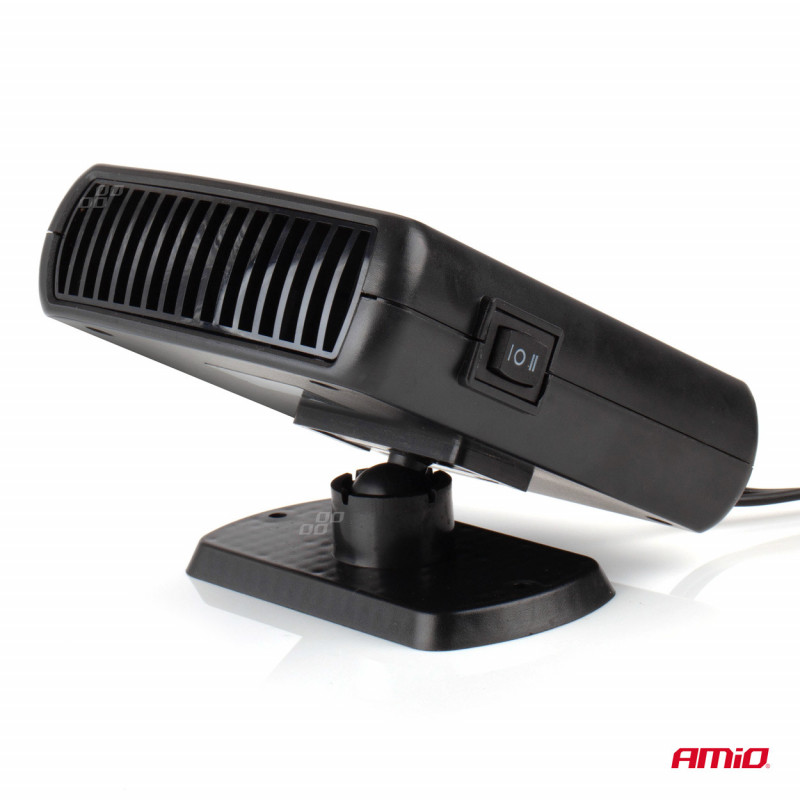 Výrobok má funkcie horúceho a studeného vzduchu.Vhodné pre napájanie zo zásuvky zapaľovača cigariet 12 V. Funkcia sa volí spínačom umiestneným na kryte. Nastaviteľný držiak s lepiacou páskou.