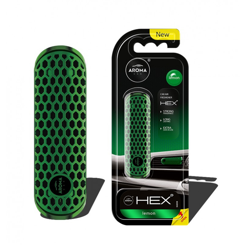 Hex je polymérny osviežovač vzduchu určený pre vodičov, ktorí oceňujú minimalizmus a moderný dizajn. Umiestnený na ventilačnej mriežke zaisťuje sviežosť až 40 dní. Originálna vôňa založená na francúzskych parfumoch. TECHNOLÓGIA: Polymér - bezpečný materiál obsahujúci vôňu, ktorá sa uvoľňuje počas procesu odparovania. NÁVOD NA POUŽITIE: Produkt vyberte z obalu. Môžete ho použiť jedným z 2 spôsobov. Pripevnite plastový krúžok na produkt a použite ho ako vonný prívesok na kľúče alebo ho pomocou držadla nainštalujte na vetrací otvor v automobile.