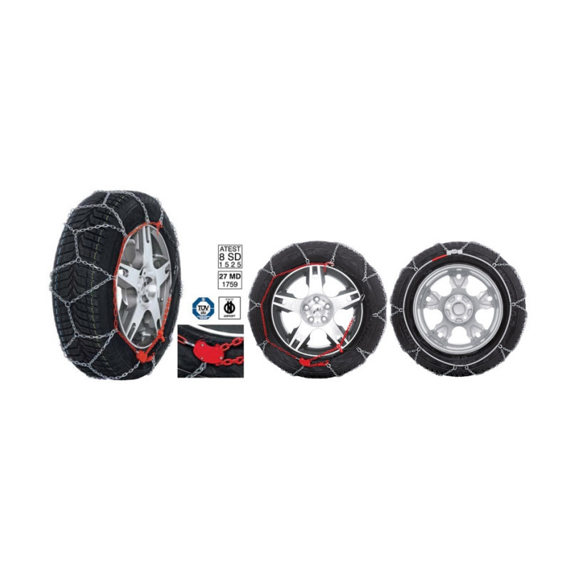 9 mm reťazová sieť pre autá s minimálnym miestom v podbehoch. Nízke a pritom veľmi odolné články zaručujú pokojnú a pohodlnú jazdu. Tvrdené štvorhranné články legovanej niklmanganom...