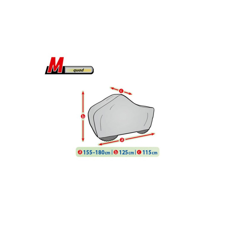 Vodovzdorná plachta na štvorkolku odvádzajúca vlhkosť spod plachty. Chráni vozidlo pred poveternostnými vplyvmi celý rok. Ľahko sa nasadzuje a dáva dole a je veľmi skladná. Vďaka zvláštnej konštrukciu a trojvrstvovej nepremokavej paropriepustnej membráne a ťažko premokavému paropriepustnému materiálu plachta počas dažďa udržiava skoro úplnú tesnosť, a zároveň v plusovej teplote okolia odvádza vlhkosť von, ktorá sa zhromažďuje pod plachtou. Ochranná plachta štvorkolky chráni pred jamkovou koróziou, vyblednutím a strácaním lesku laku a chrómovaných elementov. Chráni pred väčšinou rýh. Obmedzuje koróziu. Chráni pred dažďom (tiež kyslým), slnkom (tiež UV žiarením), prachom, vtáčím trusom, lístami a šťavou stromov, snehom a námrazou. Ochranná plachta dobre sedí, je pevne upevnená pomocou tradičnej viazacie pásky so šnúrou po celom obvode vozidla, vyrobená z pevného a hladkého materálu na vnútornej strane, vďaka čomu sa môže bezpečne používať dokonca aj za silného vetra. Garancia 2 roky.