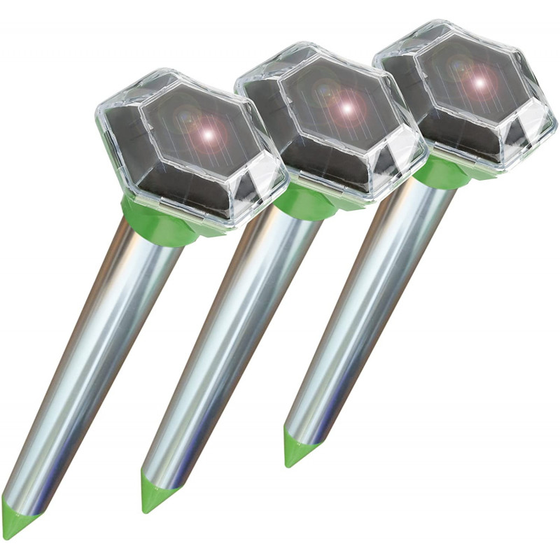Toto zariadenie na odpudzovanie zvierat je jedným z odpudzovačov novej generácie! Generuje vibrácie v cca. 60 sekundových intervaloch vo frekvenčnom rozsahu 400 Hz ± 50 Hz. Vonkajší test ukázal, že tieto špeciálne generované vibrácie majú optimálnu efektívnu plochu približne. 1 000 m², v závislosti od stavu pôdy. Pretože tónové frekvencie a vibrácie sú pre mnohé pôdne zvieratá neznesiteľné, migrujú do iných oblastí. Ostatné užitočné zvieratá nie sú poškodené. Integrovaný vibračný motor striedavo s emisiami frekvencií vysiela vibrácie do zeme v nepravidelných intervaloch, aby podráždil zvieratá a utiekol. Nepravidelné intervaly znižujú návyky zvierat na narušenie ich životného prostredia. V niektorých prípadoch krtkova spočiatku vzdorne reagujú na nasadenie zariadenia zvýšením svojej kopacej aktivity a vytvorením ďalších krtincov. Toto je prirodzená reakcia. Ale keďže emitované oscilácie a vibrácie sú pre hlodavce z dlhodobého hľadiska neúnosné, po niekoľkých dňoch alebo týždňoch natrvalo migrujú do iných oblastí. Solárny odpudzovač zvierat je možné použiť na záhrade, na poli alebo na iných vonkajších priestranstvách s nežiaducimi hlodavcami. Jemne vyladené elektronické súčiastky a efektívne solárne moduly zaručujú stálu funkciu aj pri horšom osvetlení. Tento prístroj odpudzuje nielen hlodavce, ale aj mravce a hady!