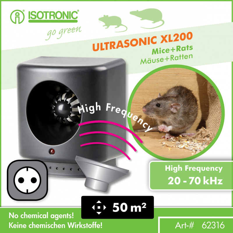 Odpudzovač-plašič XL200 slúži k ochrane priestoru v ktorom je umiestnený pred hlodavcami a kunami. Je teda možné ho využiť ako odpudzovač-plašič myší, potkanov, krýs, kún a lasičiek. Generuje špecifické ultrazvukové signály na vysokom ultrazvukovom kmitočte, ktoré sú pre drobné hlodavce a kuny veľmi nepríjemné, takže po krátkom čase chránený priestor opúšťajú a hľadajú si nové útočisko v iných objektoch, ktoré nie sú chránené. Odpudzovač je napájaný priamo zo siete 230V/50Hz.