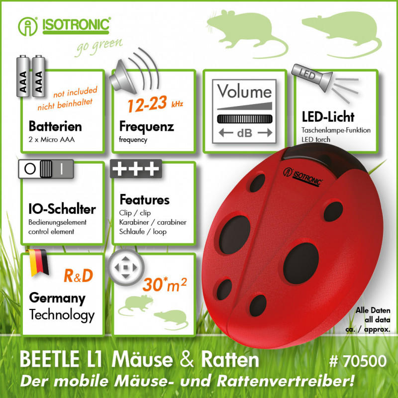 Plašič myší a hlodavcov inovatívy odpudzovač patrí medzi jeden z najlepších produktov firmy ISOTRONIC napájaný je z batérií, veľmi ľahko sa prenáša a je mimoriadne účinný proti ...