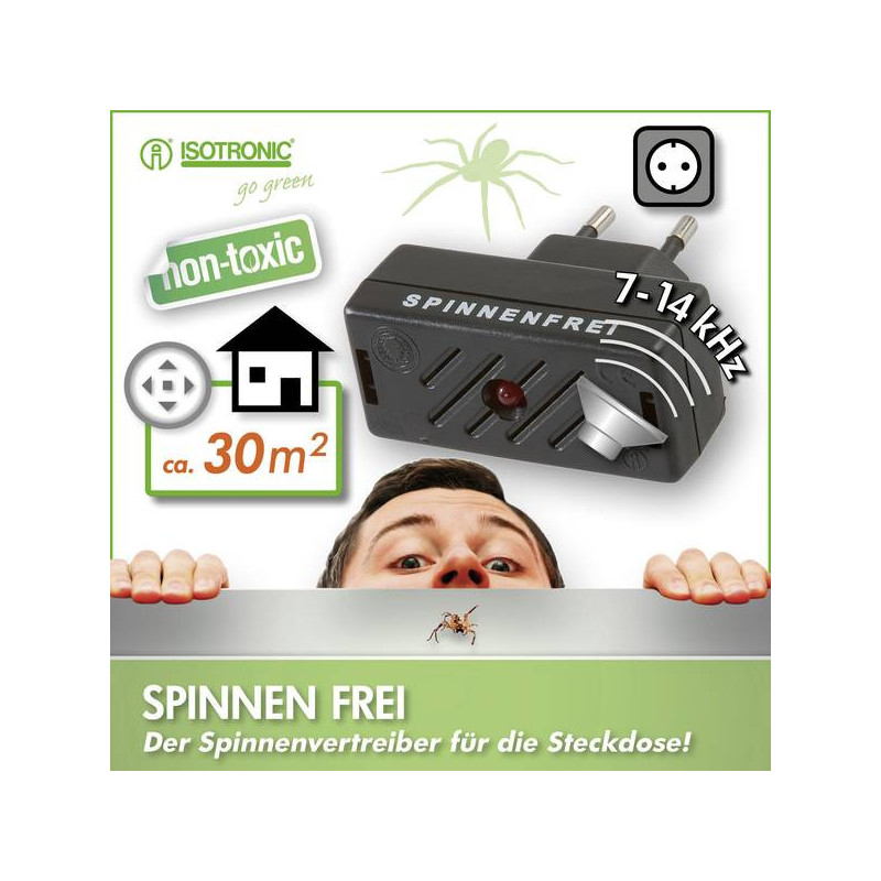 Prístroj vysiela neobyčajne vysoké zvuky, ktoré zažehnajú dlhonohých nepozvaných, ale inak užitočných tvorov späť do ich prirodzeného prostredia. Periodický signál o kmitočte 7 - 14 Hz vďaka oneskorovaču kolísa. Pavúk sa domnieva, že v jeho okolí sa objavil nepriateľ, usilujúci sa ho pripraviť o potravu a rýchlo sa začne presúvať z Vášho dosahu.