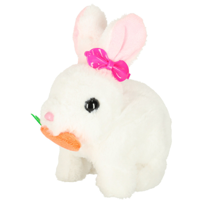 Plyšový králik mrkva chodí pohybuje ušami