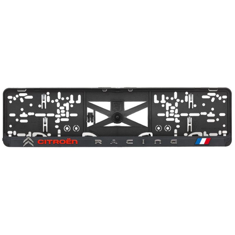 Podložka pod ŠPZ s 3D chrómovým a červeným nápisom a farebným logom značky CITROËN RACING