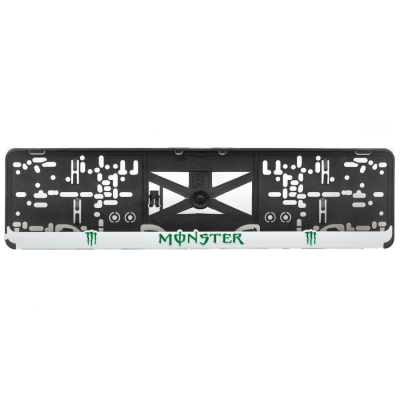 Podložka pod ŠPZ s 3D zeleným nápisom a logom značky MONSTER na bielej lište