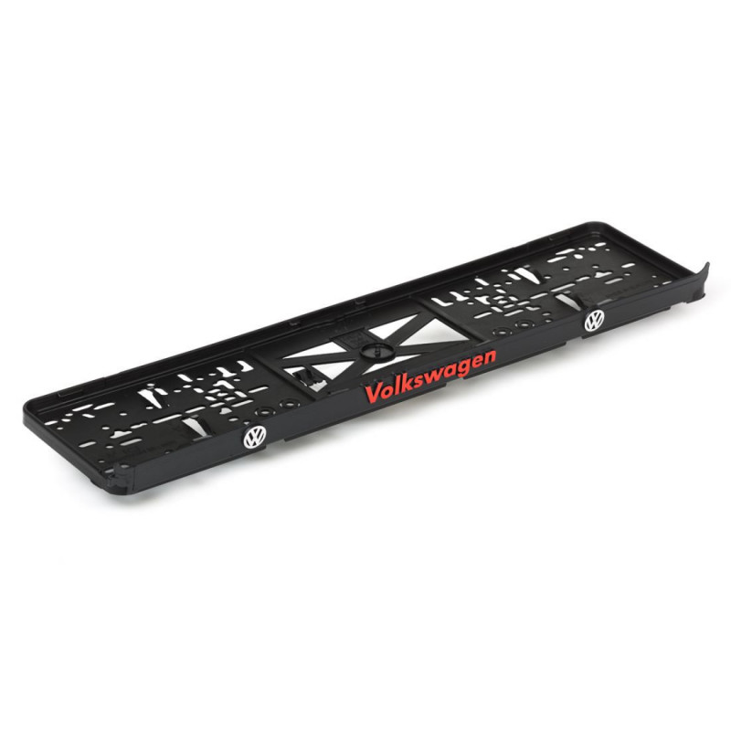 Podložka pod ŠPZ s 3D červeným nápisom a chrómovým logom značky VOLKSWAGEN