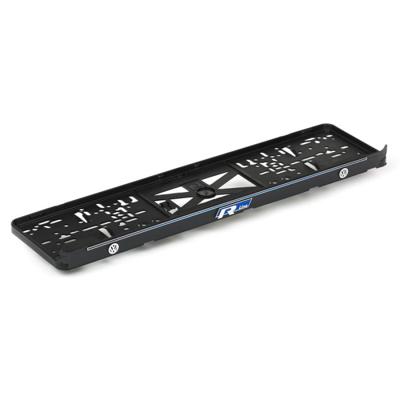 Podložka pod ŠPZ s 3D modrým nápisom a chrómovým logom značky VW R LINE