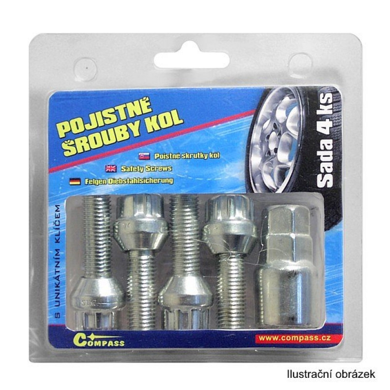 Poistné skrutky kolies ochraňujú kolesá pred demontážou bežným náradím. Sada 4 kusy + unikátny kľ&´č, montuje sa vždy len jeden poistný šrób na jedno koleso. Použiteľné pre zliatinové aj oceľové disky. Vhodné napríklad pre vozidlá Favorit do r.v. 92, viac viď tabuľka použitie.