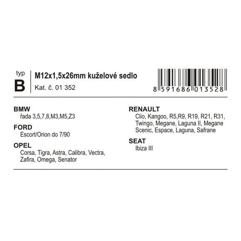 Poistné skrutky kolies B M12x1, 50x26mm kužeľové sedlo