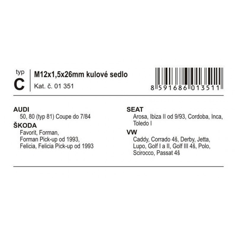 Poistné skrutky kolies C M12x1, 50x26mm guľové sedlo