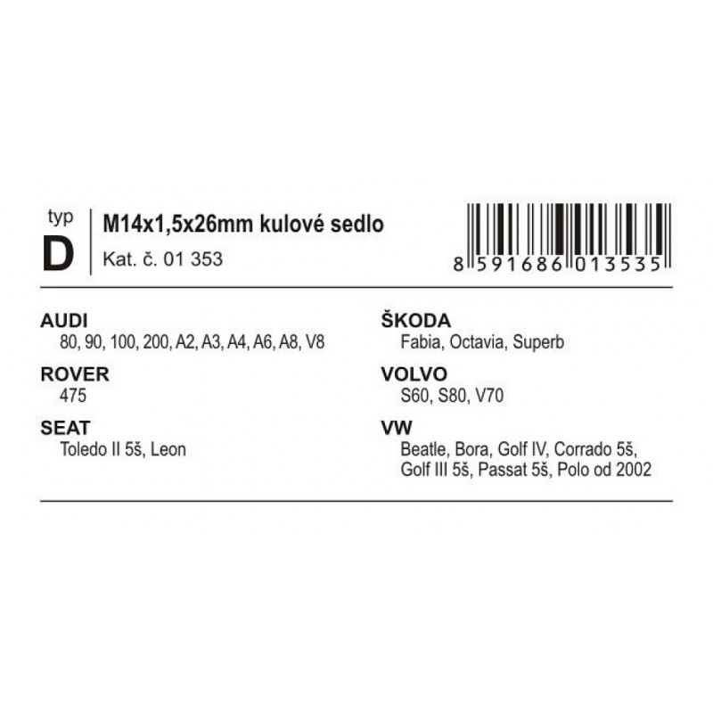 Poistné skrutky kolies D M14x1, 50x26mm guľové sedlo