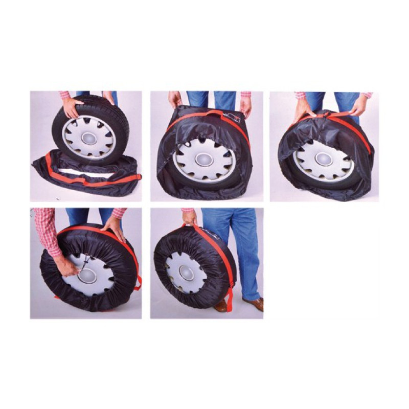 Sada 4 vysokokvalitných poťahov určených na sezónne uskladnenie pneumatík a automobilových kolies. Poťah možno tiež používať na uskladnenie rezervy v batožinovom priestore. Ochráni čalúnenie auta pred znečistením kolesom/pneumatikou.