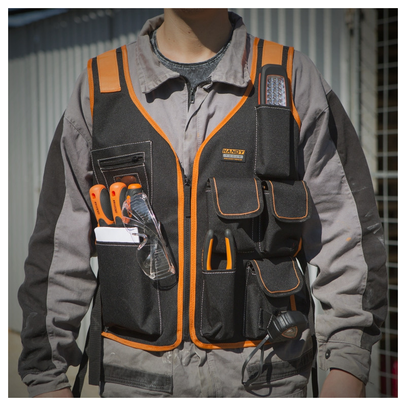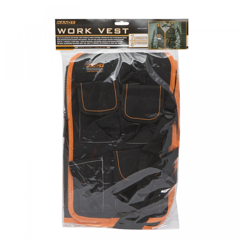 Mimoriadne odolná precízne ušitá vesta z kvalitných materiálov. Dlhá životnosť vďaka zosilnenému materiálu na exponovaných miestach multifunkčných vreciek. Množstvo rôznych odkladacích miest, okrem iného 7 vreciek - z ktorých 3 sú kryté klopami, 1 je na zips - určené na doklady a cenosti. Pracovná vesta určená pre všetkých, ktorí majú vysoké nároky.