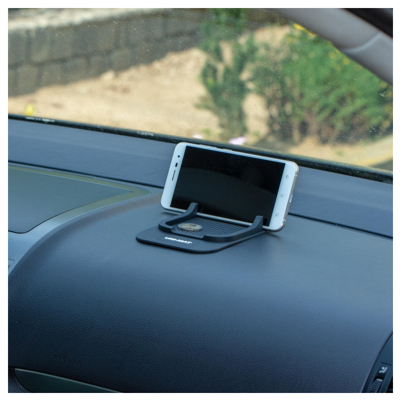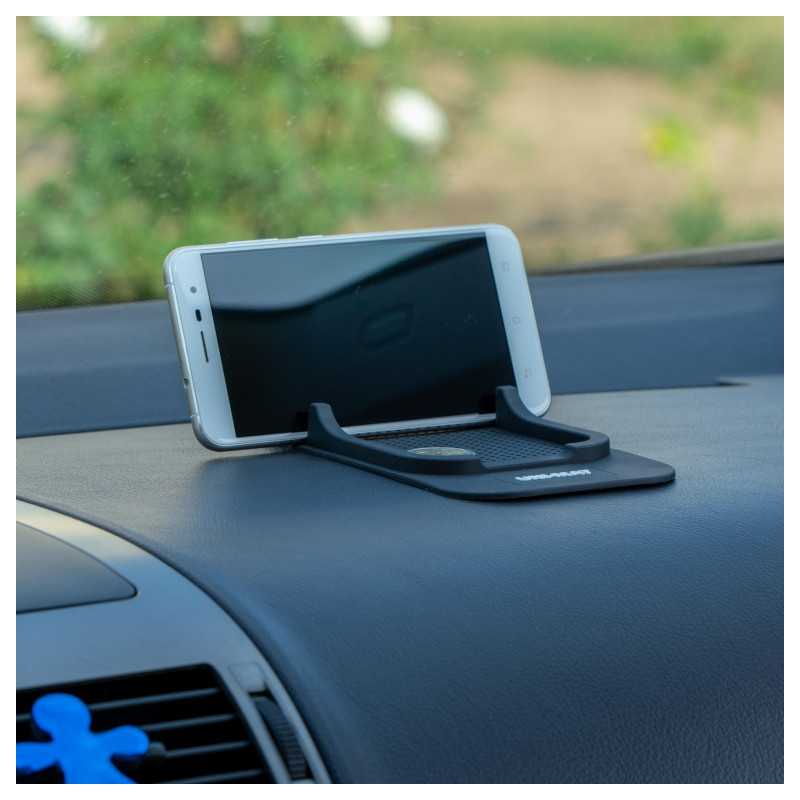 Podložka na palubnú dosku s vstavanou štrbinou na telefón. Môže byť umiestená na prístrojovej doske vozidla, kancelárskom stole, kuchynskom stole a inom čistom, hladkom povrchu.