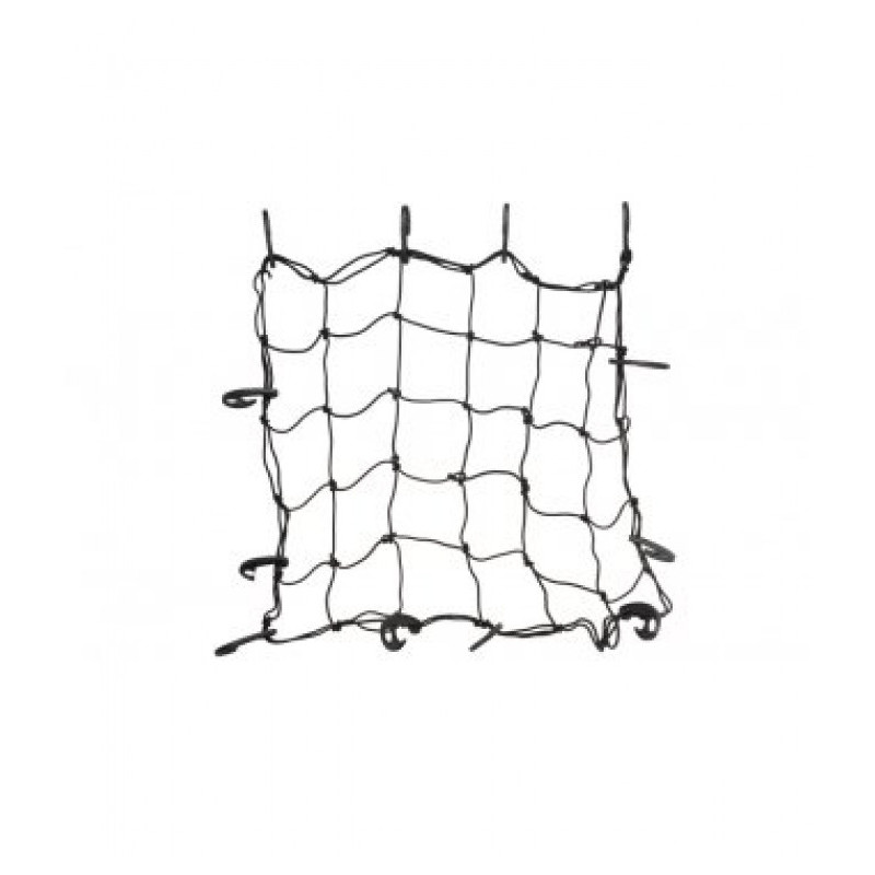 Pružná upevňovacia sieť s háčikmi, veľkosť 70 x 90 cm. Ideálne na pripevnenie predmetov v batožinovom priestore osobného automobilu.