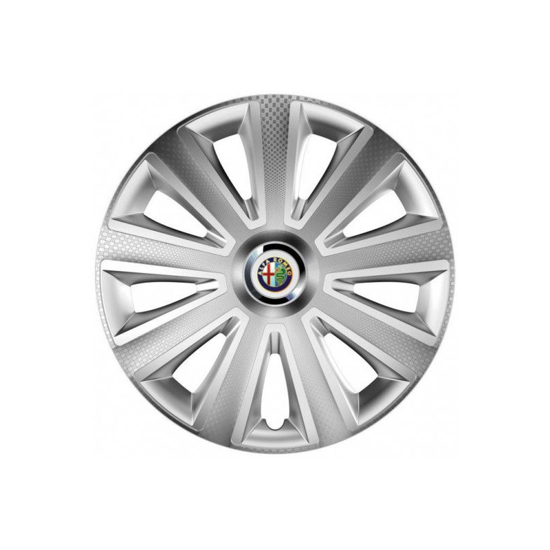 Puklice 14 Aviator carbon RC silver pre Alfa Romeo na ocelové disky. Pre kolesá o veľkosti R14 so živicovými samolepkami Alfa Romeo.Получател :