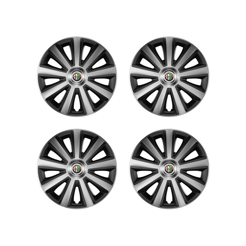 Puklice 15 Aviator carbon silver&black pre Alfa Romeo na ocelové disky. Pre kolesá o veľkosti R15 so živicovými samolepkami Alfa Romeo.Получател :