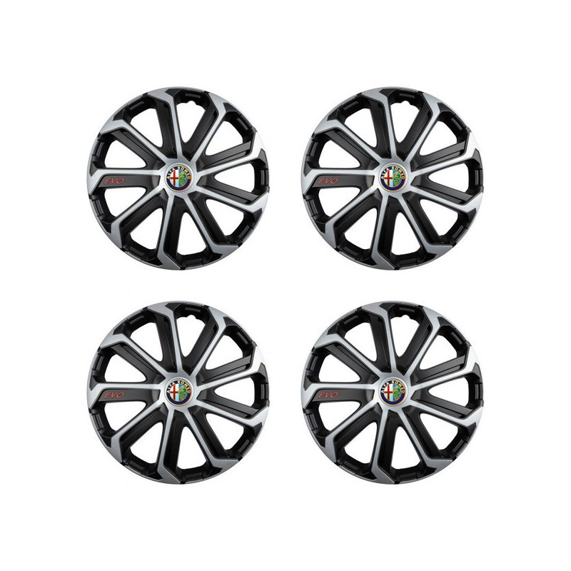 Puklice 15 Evo black&silver pre Alfa Romeo na ocelové disky. Pre kolesá o veľkosti R15 so živicovými samolepkami Alfa Romeo.Получател :