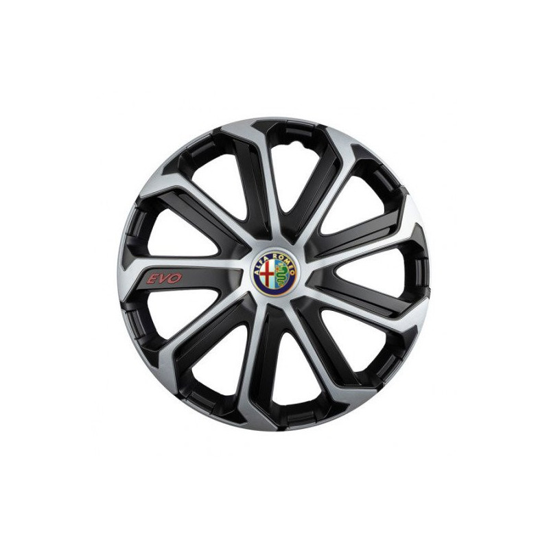 Puklice 16 Evo black&silver pre Alfa Romeo na ocelové disky. Pre kolesá o veľkosti R16 so živicovými samolepkami Alfa Romeo.Получател :