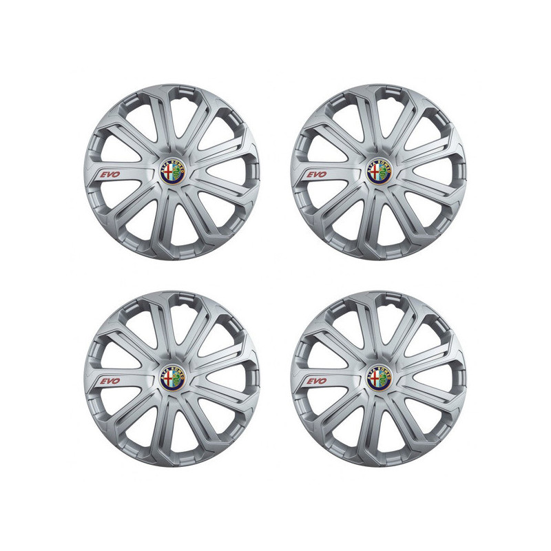Puklice 16 Evo silver pre Alfa Romeo na ocelové disky. Pre kolesá o veľkosti R16 so živicovými samolepkami Alfa Romeo.Получател :