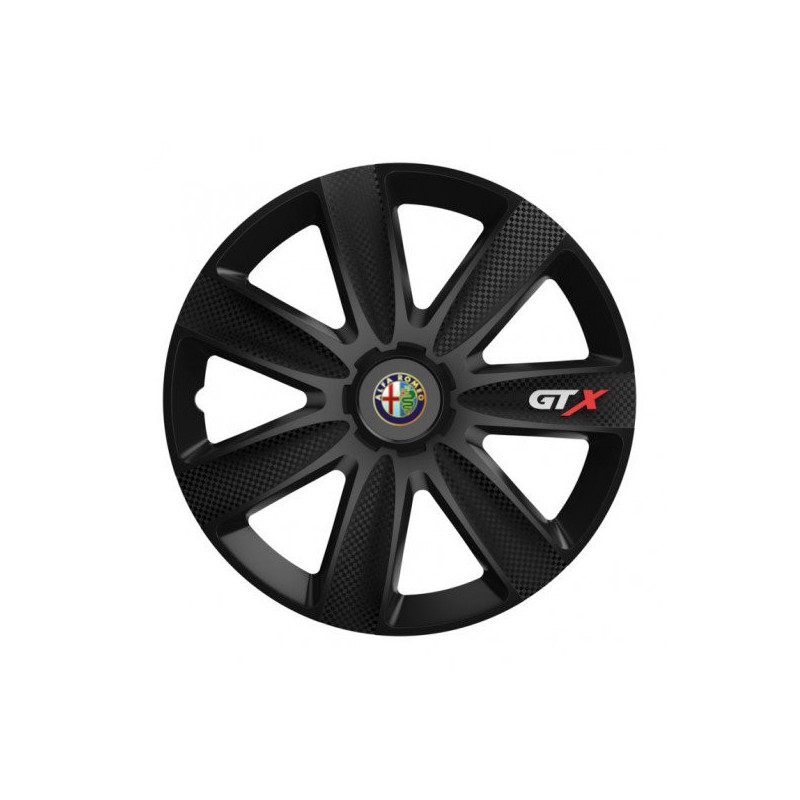 Puklice 16 GTX CARBON black pre Alfa Romeo na ocelové disky. Pre kolesá o veľkosti R16 so živicovými samolepkami Alfa Romeo.Получател :