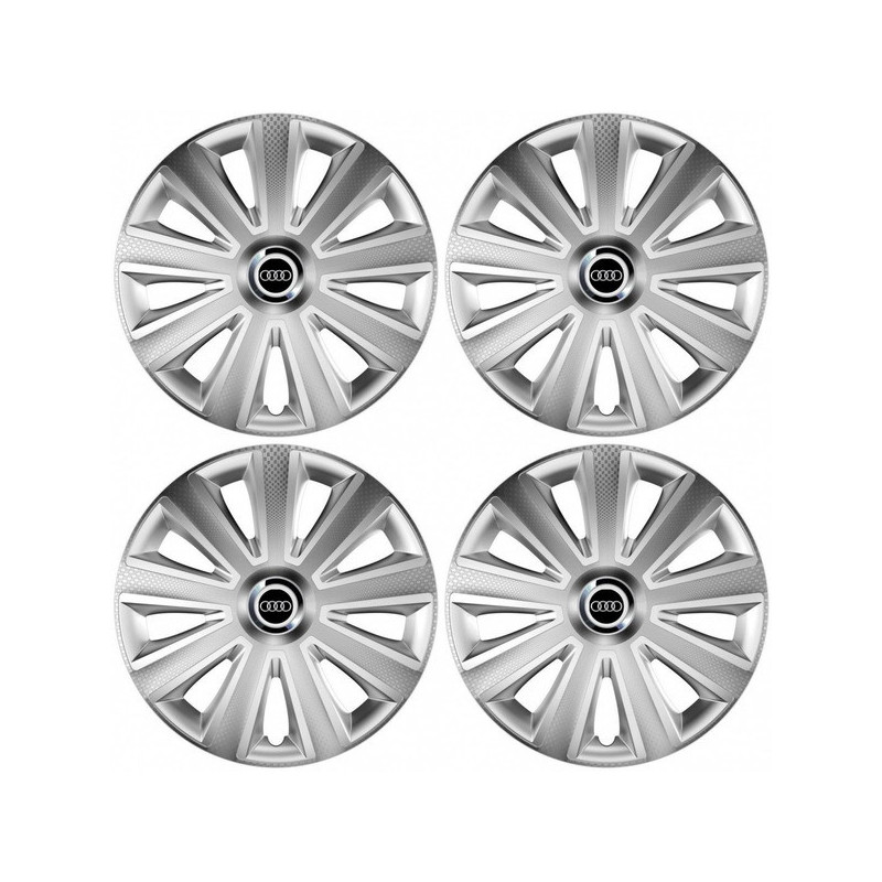 Puklice 14 Aviator carbon RC silver pre Audi na ocelové disky. Pre kolesá o veľkosti R14 so živicovými samolepkami Audi.Получател :