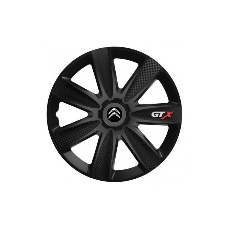 Puklice 15 GTX CARBON black pre Citroen na ocelové disky. Pre kolesá o veľkosti R15 so živicovými samolepkami Citroen.Получател :