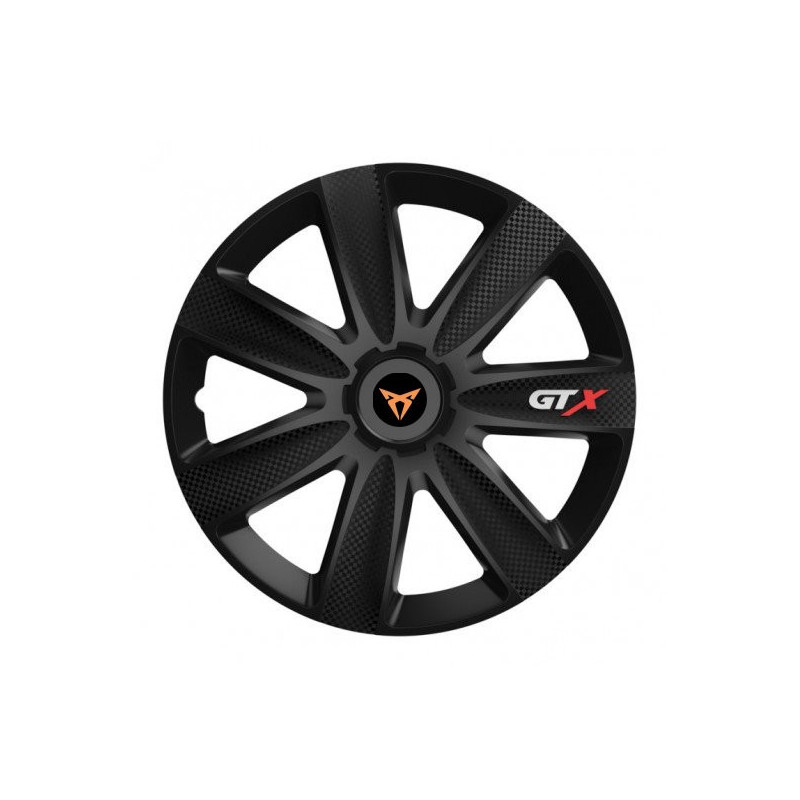 Puklice 14 GTX CARBON black pre Cupra na ocelové disky. Pre kolesá o veľkosti R14 so živicovými samolepkami Cupra.Получател :
