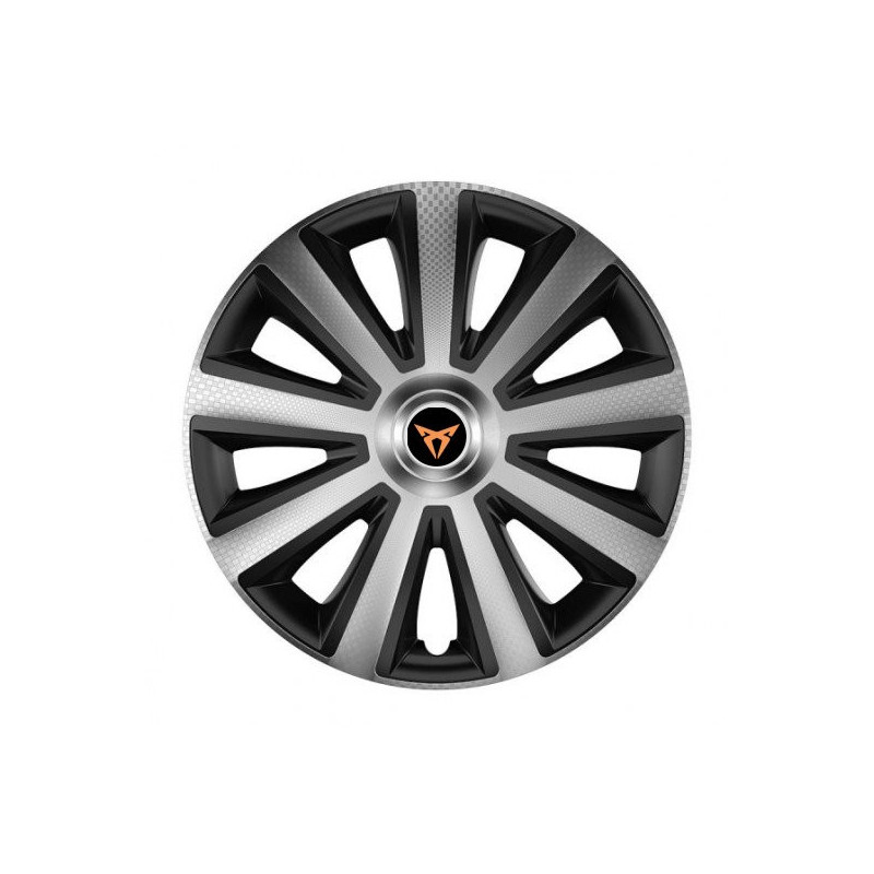 Puklice 16 Aviator carbon silver&black pre Cupra na ocelové disky. Pre kolesá o veľkosti R16 so živicovými samolepkami Cupra.Получател :