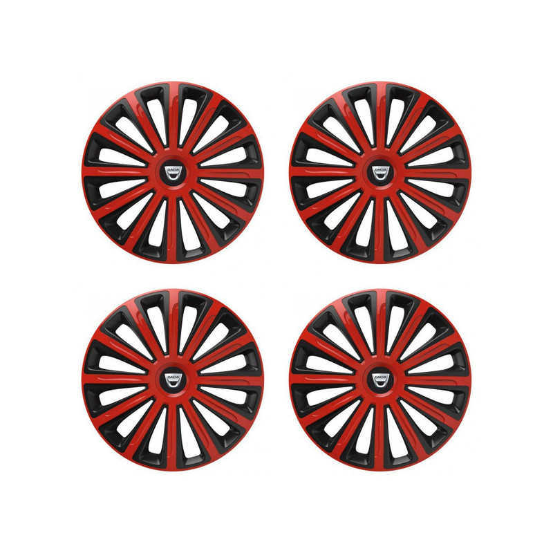 Puklice 15 TREND red and black pre Dacia (staršie logo) na ocelové disky. Pre kolesá o veľkosti R15 so živicovými samolepkami Dacia (staršie logo).Получател :