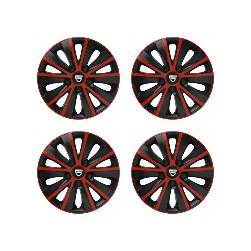 Puklice 16 RAPIDE red and black pre Dacia (staršie logo) na ocelové disky. Pre kolesá o veľkosti R16 so živicovými samolepkami Dacia (staršie logo).Получател :