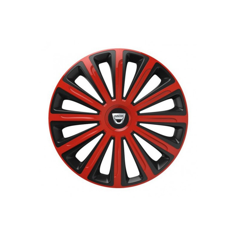 Puklice 16 TREND red and black pre Dacia (staršie logo) na ocelové disky. Pre kolesá o veľkosti R16 so živicovými samolepkami Dacia (staršie logo).Получател :