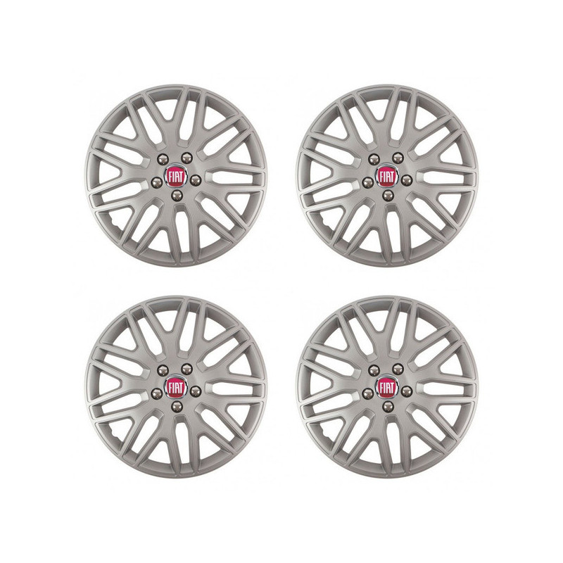 Puklice 14 DAKAR pre Fiat (červené) na ocelové disky. Pre kolesá o veľkosti R14 so živicovými samolepkami Fiat (červené).Получател :