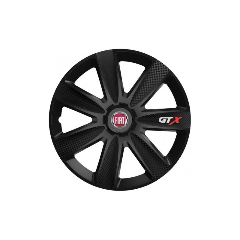 Puklice 15 GTX CARBON black pre Fiat (červené) na ocelové disky. Pre kolesá o veľkosti R15 so živicovými samolepkami Fiat (červené).Получател :