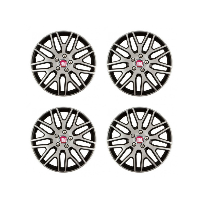 Puklice 16 Dakar NC silver and black pre Fiat (červené) na ocelové disky. Pre kolesá o veľkosti R16 so živicovými samolepkami Fiat (červené).Получател :