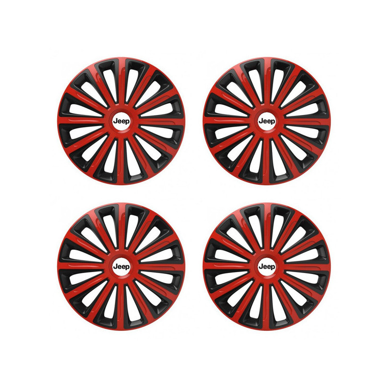 Puklice 15 TREND red and black pre Jeep na ocelové disky. Pre kolesá o veľkosti R15 so živicovými samolepkami Jeep.Получател :