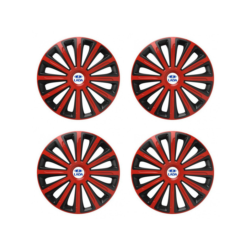 Puklice 15 TREND red and black pre Lada na ocelové disky. Pre kolesá o veľkosti R15 so živicovými samolepkami Lada.Получател :