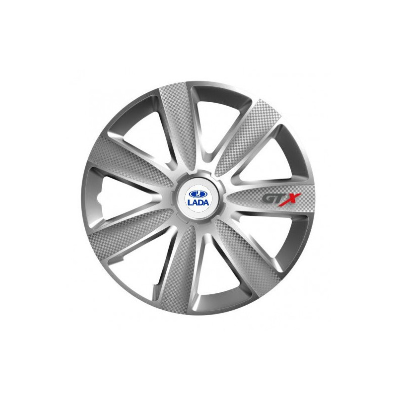 Puklice 16 GTX CARBON silver pre Lada na ocelové disky. Pre kolesá o veľkosti R16 so živicovými samolepkami Lada.Получател :
