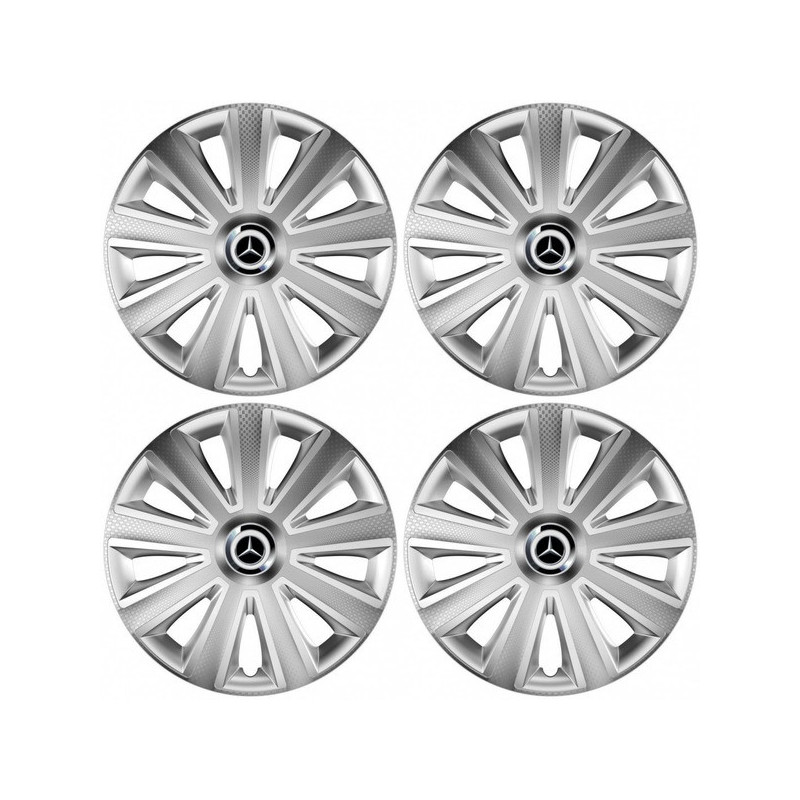Puklice 14 Aviator carbon RC silver pre Mercedes na ocelové disky. Pre kolesá o veľkosti R14 so živicovými samolepkami Mercedes.Получател :