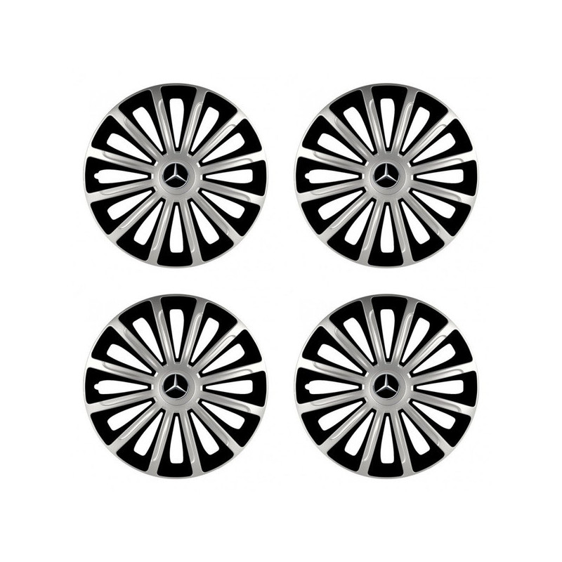Puklice 16 TREND silver and black pre Mercedes na ocelové disky. Pre kolesá o veľkosti R16 so živicovými samolepkami Mercedes.Получател :
