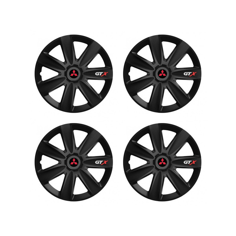 Puklice 14 GTX CARBON black pre Mitsubishi (červené) na ocelové disky. Pre kolesá o veľkosti R14 so živicovými samolepkami Mitsubishi (červené).Получател :