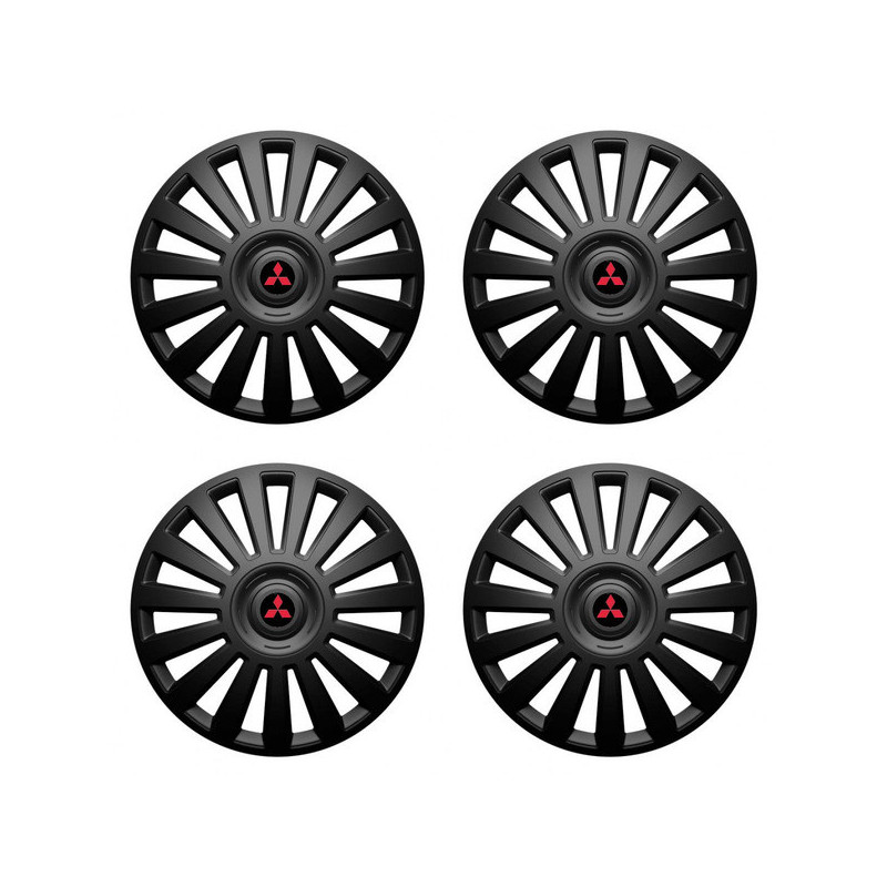 Puklice 14 Luxury black pre Mitsubishi (červené) na ocelové disky. Pre kolesá o veľkosti R14 so živicovými samolepkami Mitsubishi (červené).Получател :