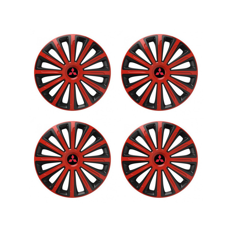 Puklice 15 TREND red and black pre Mitsubishi (červené) na ocelové disky. Pre kolesá o veľkosti R15 so živicovými samolepkami Mitsubishi (červené).Получател :