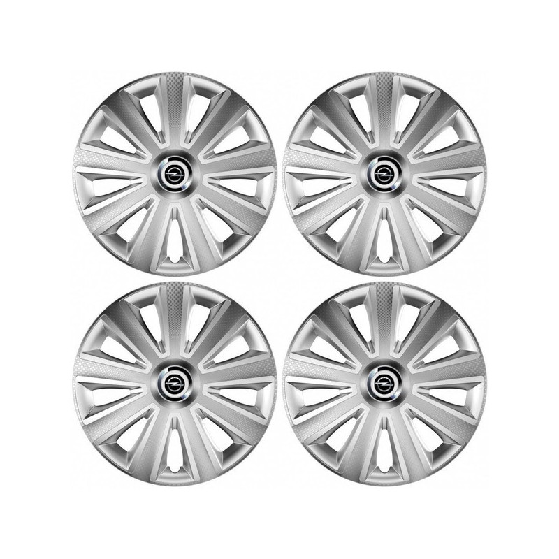 Puklice 15 Aviator carbon silver pre Opel na ocelové disky. Pre kolesá o veľkosti R15 so živicovými samolepkami Opel.Получател :
