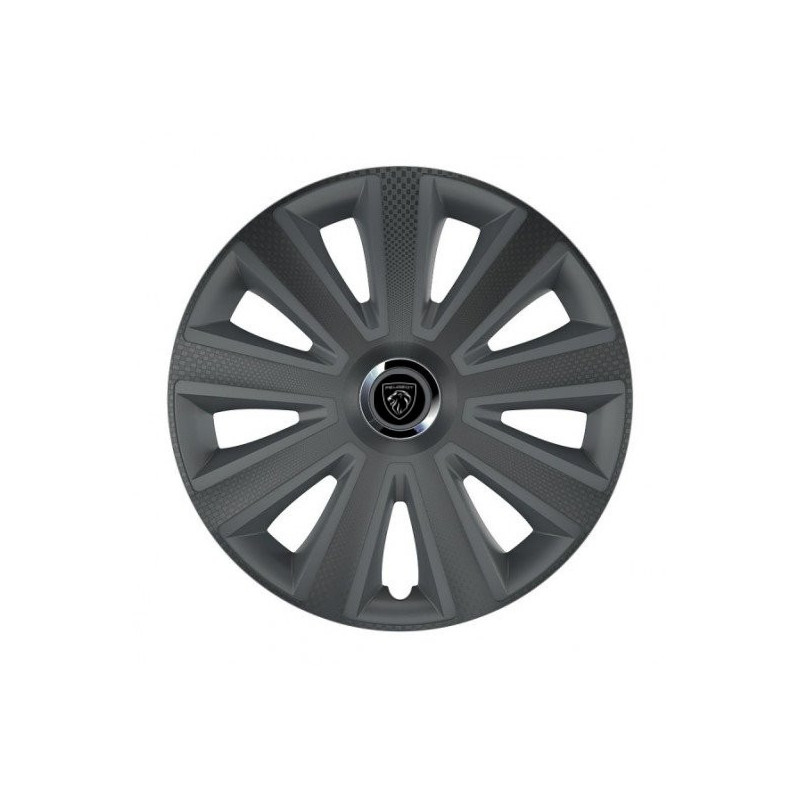 Puklice 15 Aviator carbon grafite pre Peugeot (nové logo) na ocelové disky. Pre kolesá o veľkosti R15 so živicovými samolepkami Peugeot (nové logo).Получател :